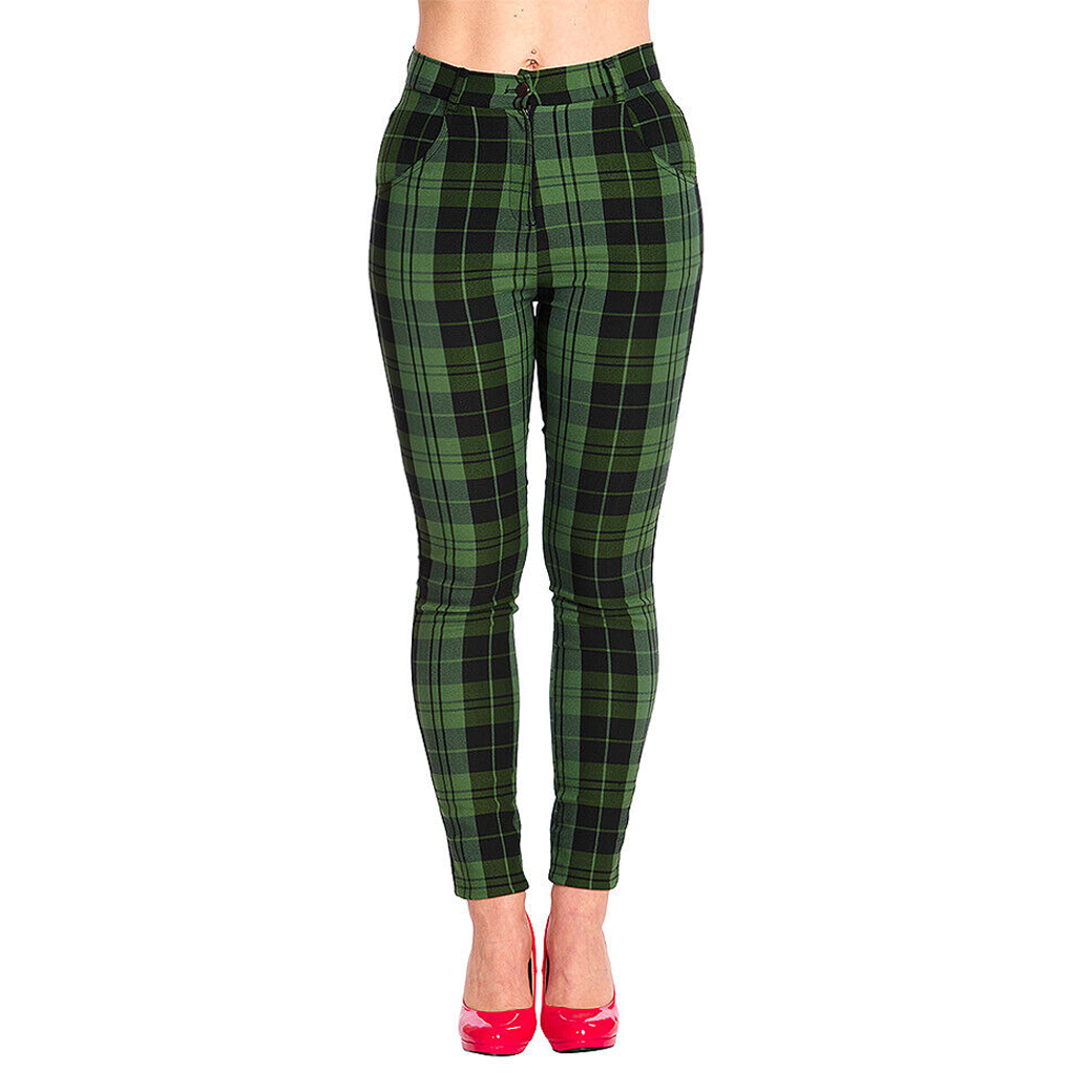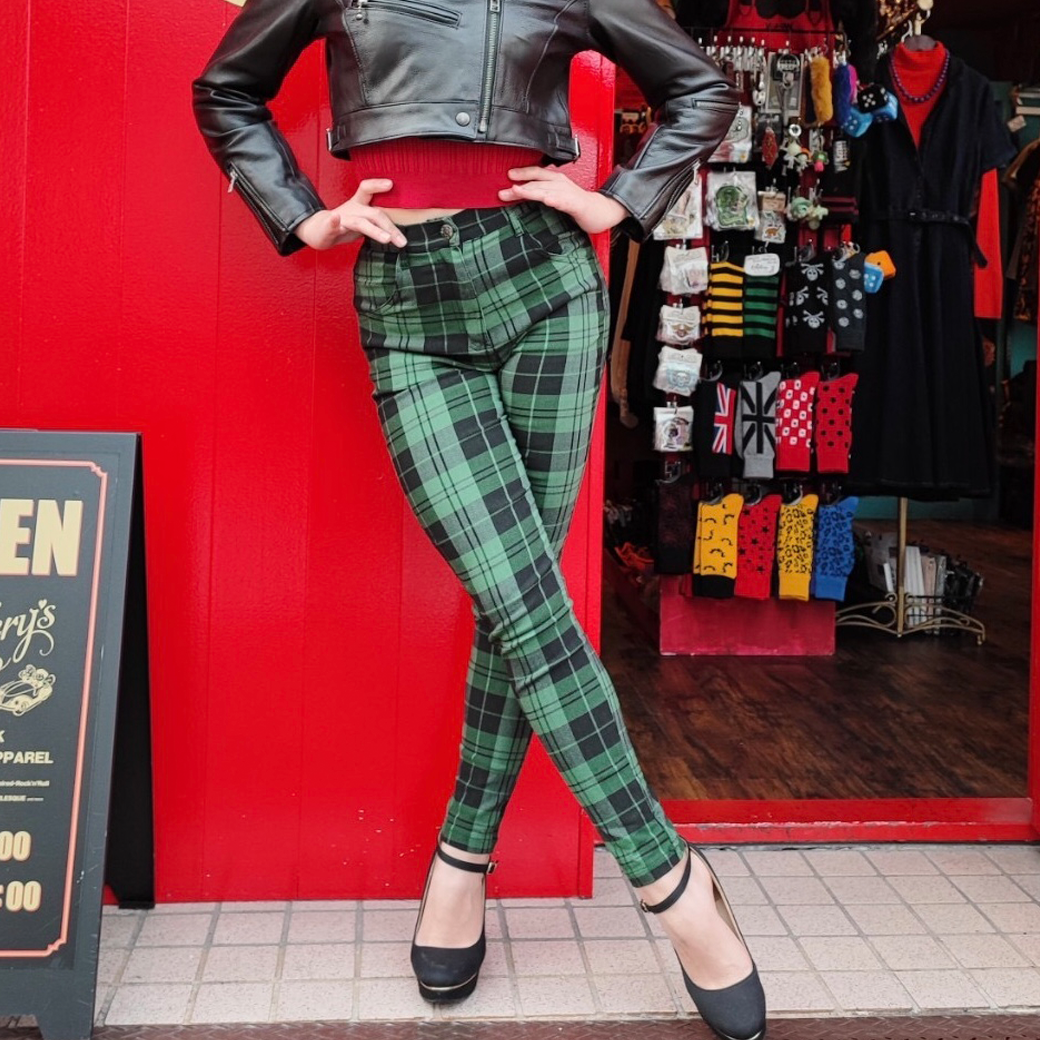 【BANNED】POWER TROUSER Black and Green チェックハイウエストパンツ