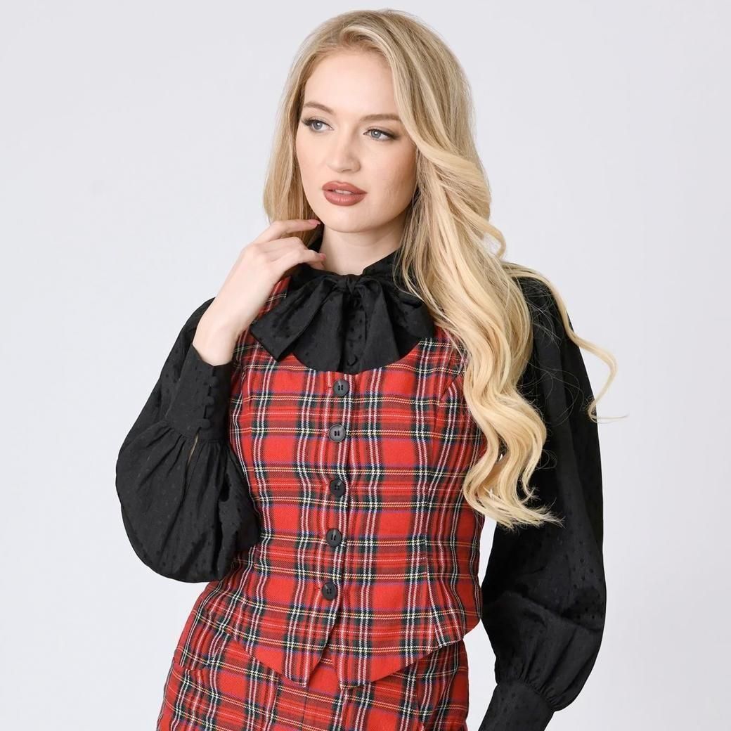 【Smak Parlour by Unique Vintage】Red Plaid Scoop Neck Vest