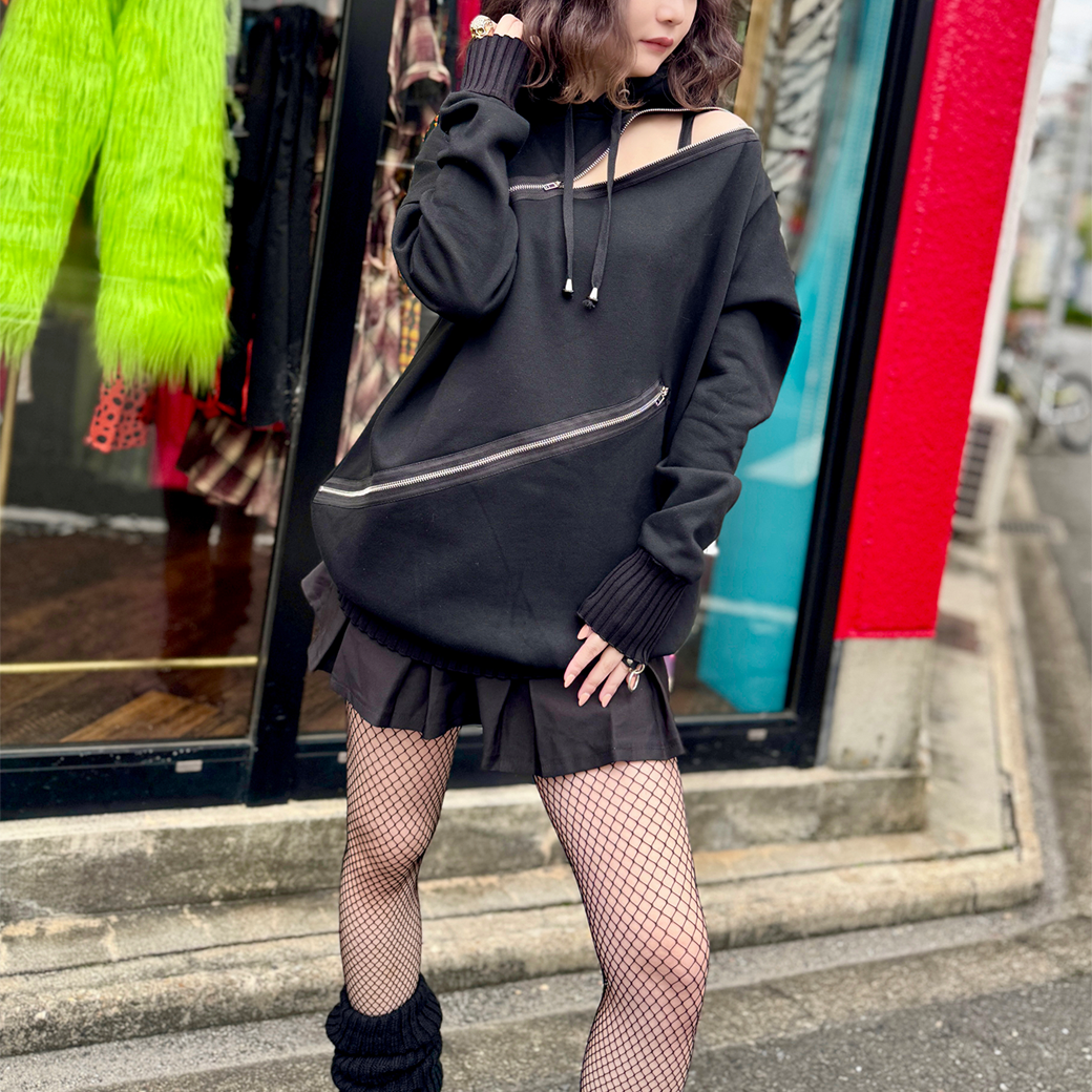 上部のジップを開けると素肌が見えるのでカジュアルでありながら大胆なルックを楽しめます