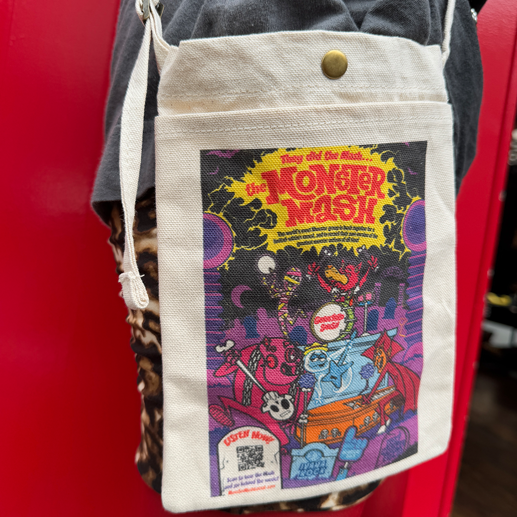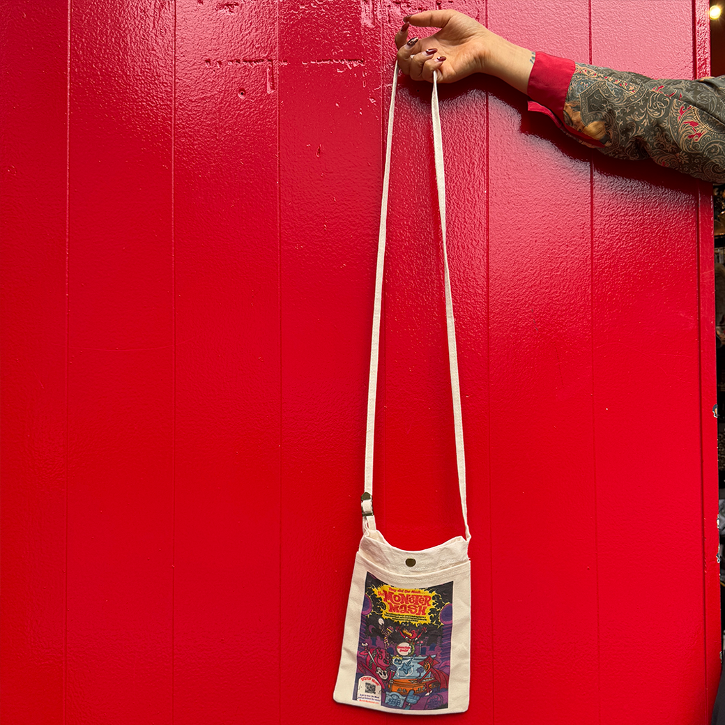 レトロテイストなコミック調のイラストがプリントされたMonster Mashのミニショルダーバッグ
