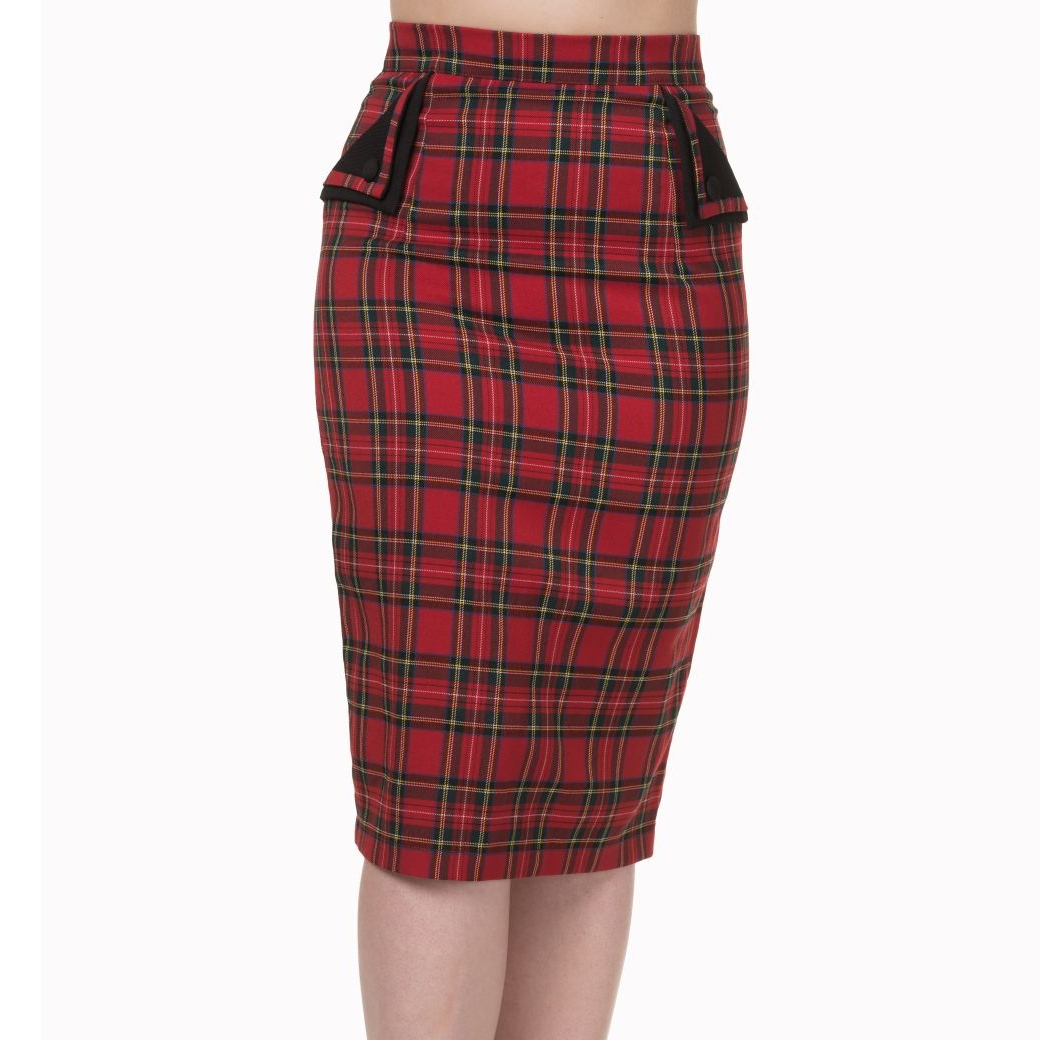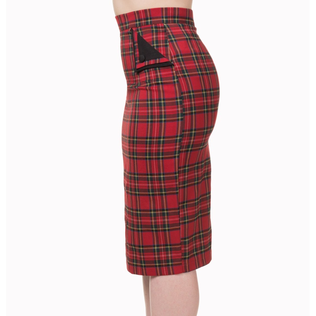 レトロスタイルにキュートなアクセントをプラスしてくれる赤いタータンチェックのペンシルスカート