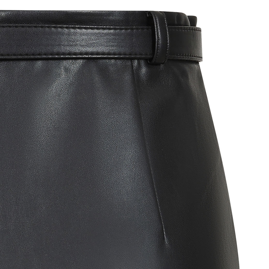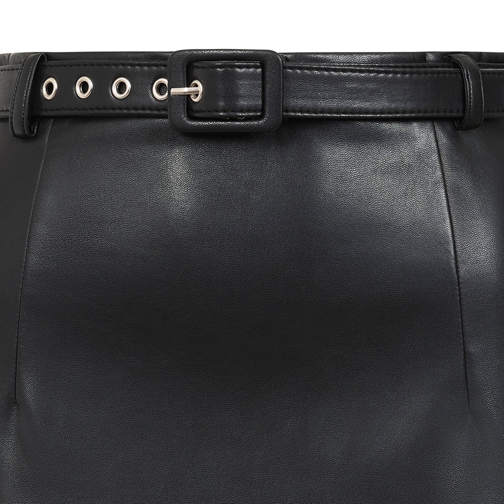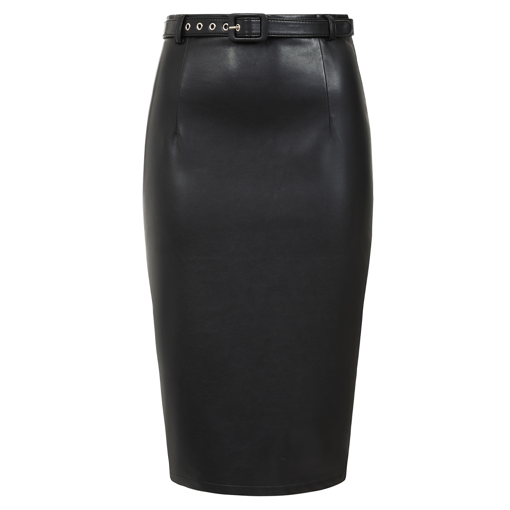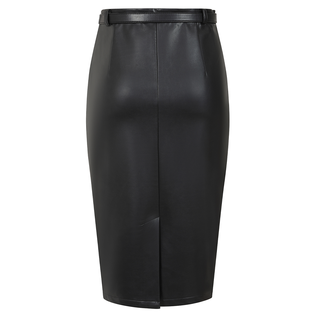 クールでエレガントなベルト付きのフェイクレザーペンシルスカート